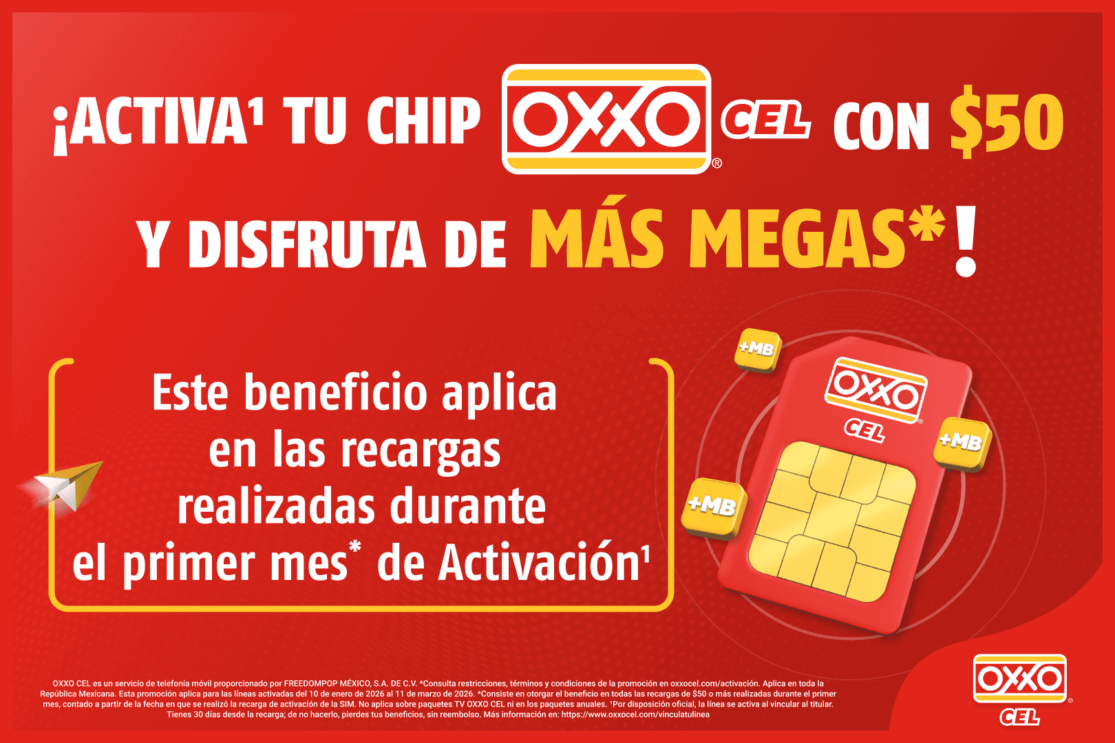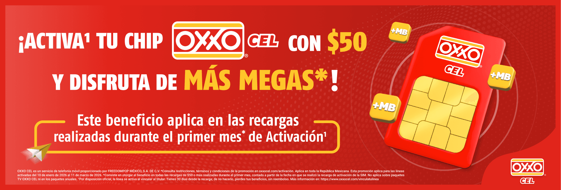 Promoción vigente del 10 de Enero del 2026 al 11 de Marzo del 2026. No aplica con otras promociones. Aplica en toda la República Mexicana. *SERVICIOS ILIMITADOS están sujetos a la política de uso justo descrita en el link freedompop.mx/usojusto.htm Las marcas y logotipos presentados aquí son informativas; no implica autorización de uso. Tarifas Base CRT: 2346836,2346906,2347297,2347323,2347353,2347374. Tarifas Promocionales CRT: 2352585,2352621,2352648,2352677,2352723,2352754.